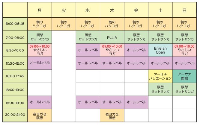 10月からヨガクラスのスケジュールが一部変更になります