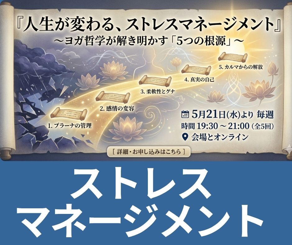 【対面とオンライン】人生が変わる、ストレスマネージメント。〜ヨガ哲学が解き明かす『5つの根源』〜